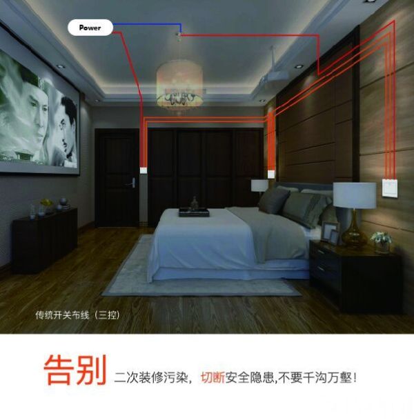 经历过工程或装修的人,都曾思考:电灯开关,为什么一定要装在墙上?为什么开关都装在房门内?每次都摸着黑开灯?孩子从小到大,孩子房间电灯开关的高度,如果能跟随孩子的个头一起“长高”该有多好?躺在床上,就能用一个设备,随时控制餐厅、客厅、厨房、阳台、厕所、楼道的灯,该有多方便?