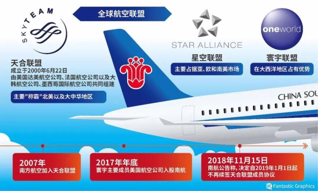 11月15日,中国南方航空股份有限公司宣布:在加入天合联盟运营满10年后,将于2019年1月1日起正式退出,并在2019年内完成各项过渡工作。
