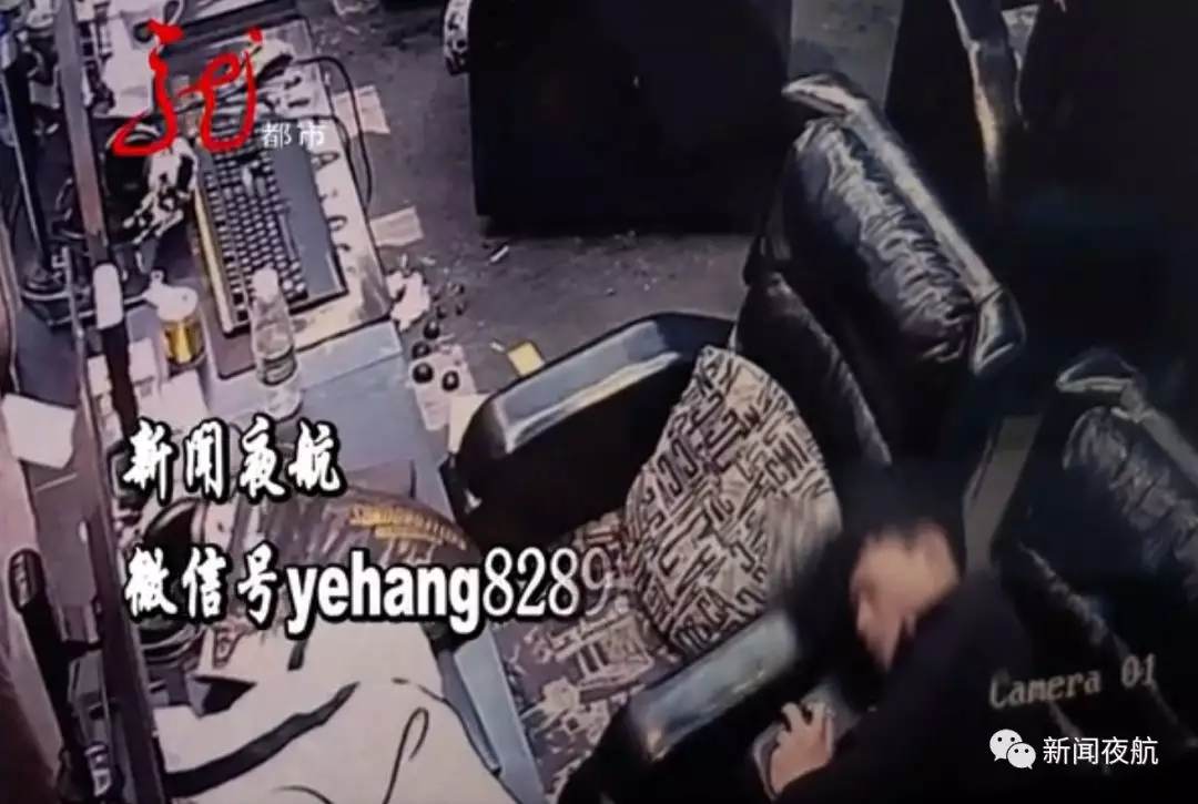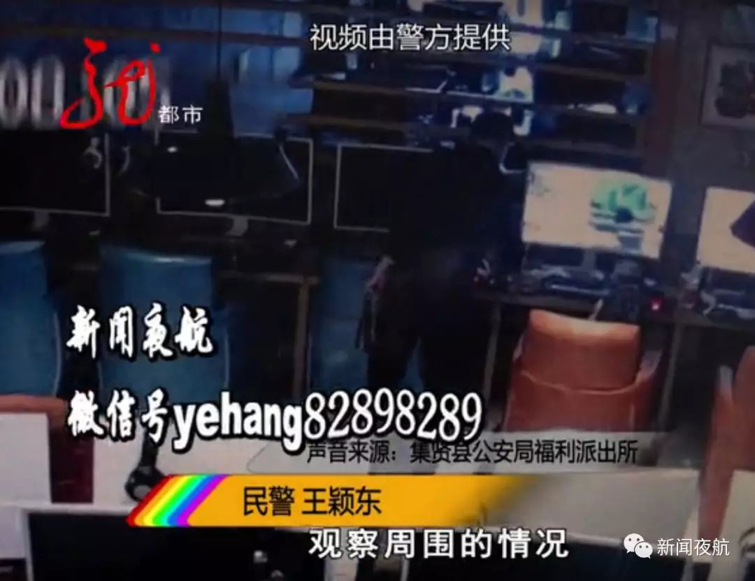这名男子,他将网吧的椅子挪到自己身边,为自己打掩护,并且慢慢地挪动,他在看监控头。
