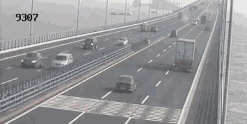 一辆悬挂深圳牌照的黑色马自达SUV在第一车道上快速行驶,突然,这辆黑色的SUV越过分道线向右偏移,眼看着就要撞上了前面的一辆平板拖车时,只见SUV迅速向左躲闪,避开了平板拖车,可是还没等车身回正,SUV又向右偏移,直接贴着平板拖车的头部超了过去,径直向大海冲去。