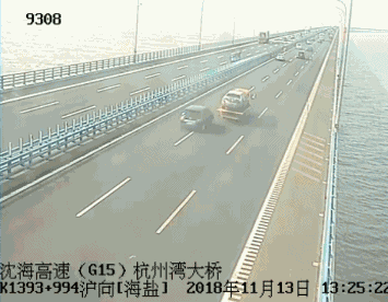 11月13日13时25分,在杭州湾跨海大桥往上海方向1394公里处(过海天一洲3公里)。
