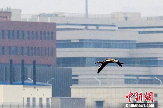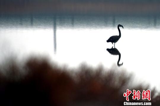 中新网乌鲁木齐11月16日电(闵勇 赵玉琴)11月中旬,新疆克拉玛依迎来雨雪天,气温骤降,在市郊栖息多日的一只火烈鸟,在大地冰冻前,只身向南飞去,寻找南迁的伙伴们。