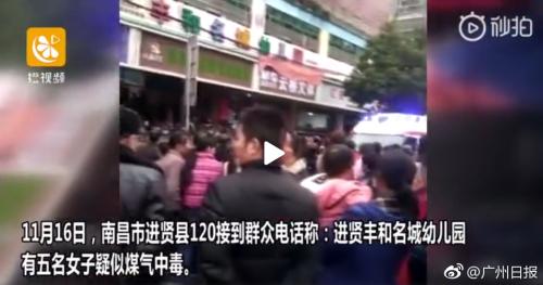 11月16日,进贤县公安局发布警方通报称:进贤县民和镇一出租房内5人死亡。经初步调查,死者均为女性,为县城某民办幼儿园聘用工作人员,尸表无外伤,疑似因洗澡且空气不流通,导致一氧化碳中毒,具体原因正在进一步调查中。
