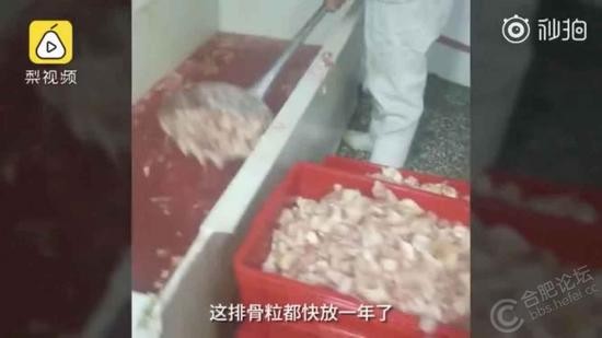 在网传视频中,食品加工车间内,有工作人员称,排骨粒都快放一年了,牛肉往里面注射大豆蛋白,工作人员说“这么多,这么干净呢”、“我们自己看了都不想吃”。