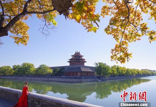 资料图:北京故宫角楼外,金黄色的枫树叶尽显秋韵。中新社记者 贾天勇 摄
