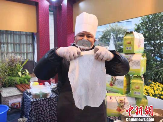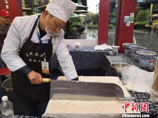 图为现场手工制作擀面皮。 阿琳娜 摄