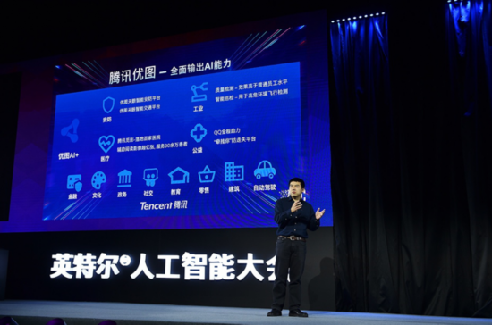 腾讯优图实验室的技术专家沈昊则重点介绍了与英特尔最新合作研发的两款智能硬件产品:腾讯优图AI摄像机与优图AI盒子,为加速AI研究的实践落地提供重要参考样本。