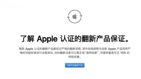 点击“进一步了解”后,可以看到更详细的介绍“每款 Apple 认证的翻新产品都经过严格的翻新流程,其中包括按照与全新 Apple 产品同样严格的功能标准进行全面测试。你的翻新设备可以真正地“焕然如新”,并提供最高可达 15% 的特别优惠。”
