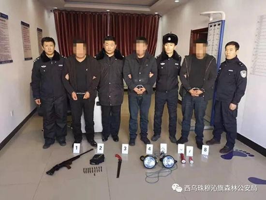 内蒙古西乌珠穆沁旗森林公安局16日通报称, 11月15日,西乌旗森林公安局太本派出所接到线索举报称,在米勒图坝有人打猎。11月15日晚,西乌旗森林公安局太本派出所民警以上山护林寻查为掩护,深入米勒图坝开展侦查。当晚9时许一辆皮卡车从山上开下来,民警包围该车并将车上所有人员全部控制。当场抓获3人,查获改装步枪一支,7.62毫米口径步枪子弹18发,弹壳1个,探照灯2个,手电筒2把,刀锯1把,壁纸刀2把。