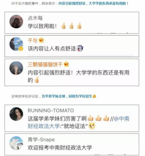 @中南财经政法大学 转发人民日报微博称:“就地证法”。