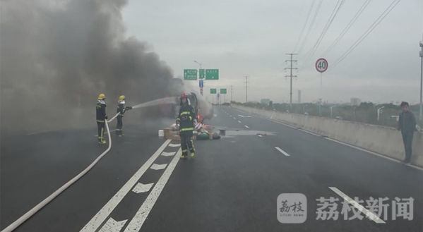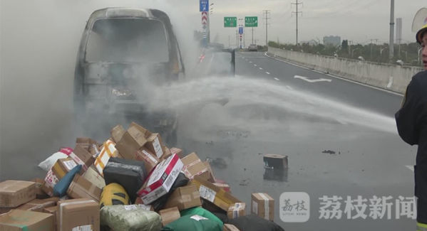 11月15号日早上,南通市区东方大道和星湖大道岔道口,一辆快递车突然起火。车上的快递小哥立即报警,并奋力灭火。但快递车上一百多件快递仍被烧毁。