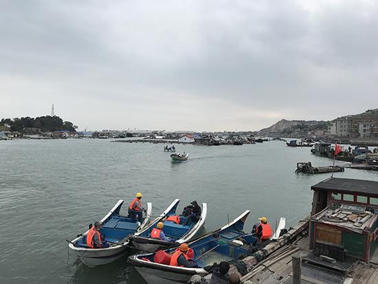 澎湃新闻在肖厝村走访发现,海鲜馆基本都已暂停营业,村子内显出一股萧瑟气息,村民们连日来聚集在紧邻渔排的肖厝村防汛渡船码头,反映索赔诉求。