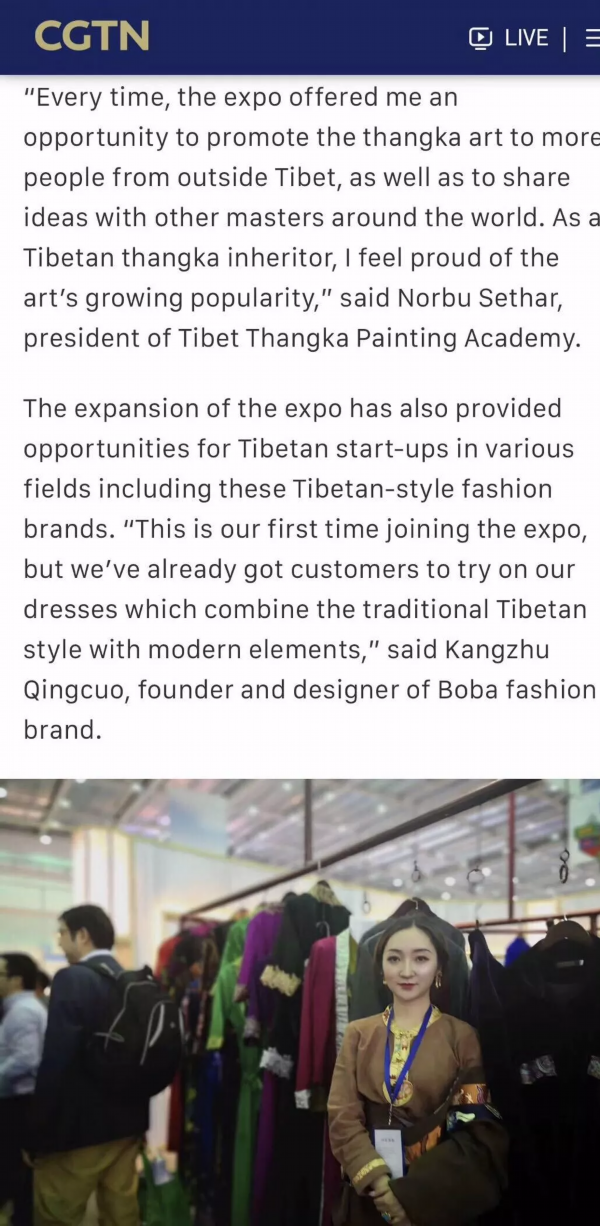 不仅是拉萨的朋友们都知道博巴藏装定制,连中国国际电视台(简称CGTN),都有报道过博巴品牌背后的故事。
