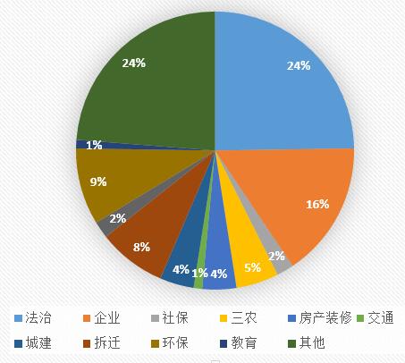 10月,按分类统计,法治类投诉量最多,占比为24%,企业类型投诉较上月有所增多。距离春节还有两个多月,农民工工资支付进入关键期,欠薪矛盾也进入易发多发期,上月企业类型投诉投诉中,有两条帖子涉及欠薪问题。