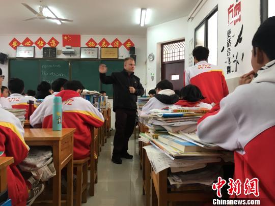 中新网贵州毕节11月17日电 (宁南 石小杰 王庆泽)“Good morning everyone!Next let us listen to a song!”一名金发高鼻梁的口语老师Gert Johannes出现在贵州省毕节市第一中学高二(11)班的课堂上,并用一口纯正的英语和学生们交流起来。