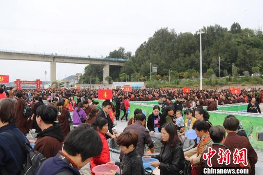 中新网温州11月17日电(见习记者 潘沁文 通讯员 李广华)11月17日,以“养海护生、感恩海洋”为主题的第八届国际放生节在浙江洞头国际放生台举行,来自社会各界的2000多名人士共同将10万尾鱼苗放流大海。
