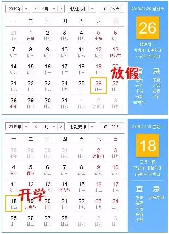 根据《省教育厅关于做好2018年中小学幼儿园暑假工作的通知》,江苏省中小学幼儿园2019年寒假放假时间为1月26日,开学上课时间为2月18日。