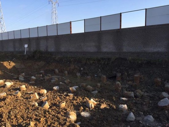 被征迁一半的中华鲟养殖场围墙外的施工工地。澎湃新闻记者 吴跃伟 摄