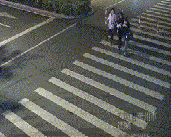 监控显示,事发前,这辆黑色轿车自南向北行驶,在经过斑马线时,撞上了正在过人行横道线的一名女子。