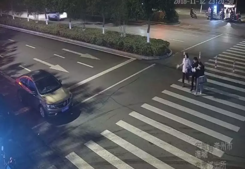 11月12日晚上,在安徽省亳州市 ,一辆黑色轿车在行驶途中,撞上了正在经过斑马线的一名女子。