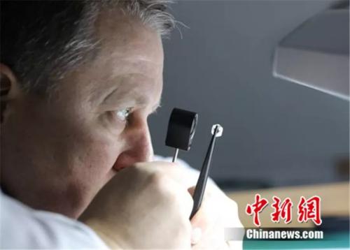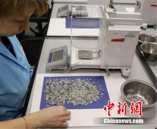 在莫斯科的打磨中心里,工作人员正在校看被打磨的钻石。