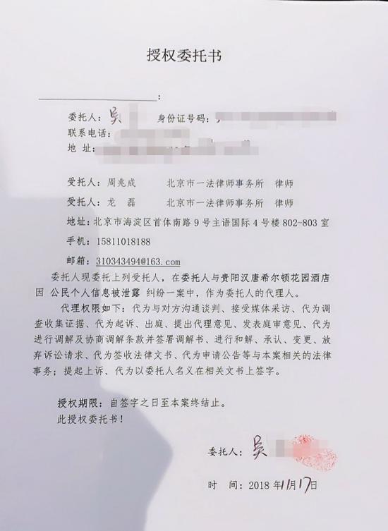 周兆成律师:酒店是为客人提供住宿服务的场所,有义务也有责任保护顾客个人身份信息,我当事人花总的护照信息属于其个人隐私,理应被保护。但是很遗憾,涉案酒店在没有经过我当事人的同意下就擅自发布到微信群内,进而扩散到互联网上,这一行为显然是侵权违法行为。作为代理律师,我了解到我当事人从来没有入住过该涉案酒店,我很想知道该酒店是如何获悉我当事人的个人身份信息?甚至这背后是否牵涉侵犯公民个人信息犯罪?这也是代理律师下一步的工作重点和目标。当然作为花总的代理律师,我也注意到在在11月16日下午16时,贵阳汉唐希尔顿花园酒店在其官方微博上也公开回应承认其侵权违法行为,同时也对我当事人首次道歉。对该酒店这一做法,我表示欣慰,但是同时我想指出的该酒店仅仅道歉是远远不够的。必须给我当事人一个合理的解释,所以在下周一我们将向该酒店快递律师函,要求涉案酒店给我们一个说法!