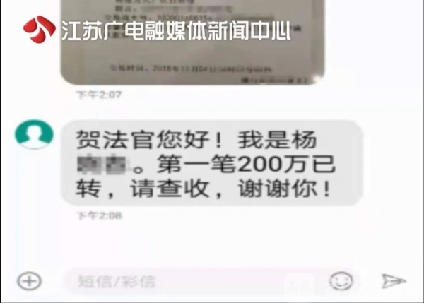 11月4日下午,镇江经济开发区法院的执行员贺刚,收到了被执行人杨某发来的短信:贺法官,第一笔200万已转,请查收。这条短信意味着一起标额达400万元的执行案件得以顺利执结。