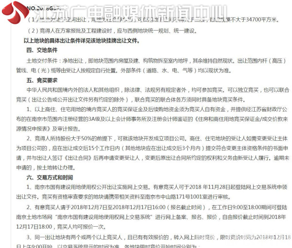 在房地产一片红火的时候,开发商们疯狂高价拿地,而眼下楼市早已入冬,开发商们拿地积极性锐减。这不,南京国土部门开始调整策略,降低开发商拿地门槛,11月17日,江宁挂出4幅地块,分布在青龙山国际生态新城和禄口。这四块地总出让面积超过15万方,总起拍价超过21亿元,将在12月18日进行土拍。值得一提的是,这次挂地降低了竞买保证金比例、取消了一家开发商只能拿一块地的出让限制,同时对于开发商拿地资质没有要求。