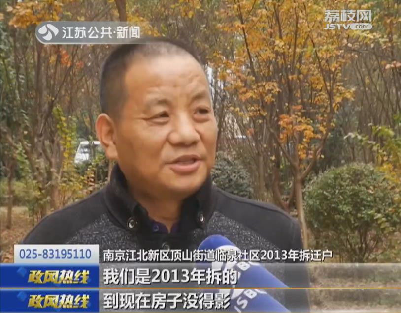 南京江北新区顶山街道临泉社区2013年拆迁户:“到现在已经(租房)五年多了,我们是2013年拆的,现在是2018年年底了,到现在房子没得影。”