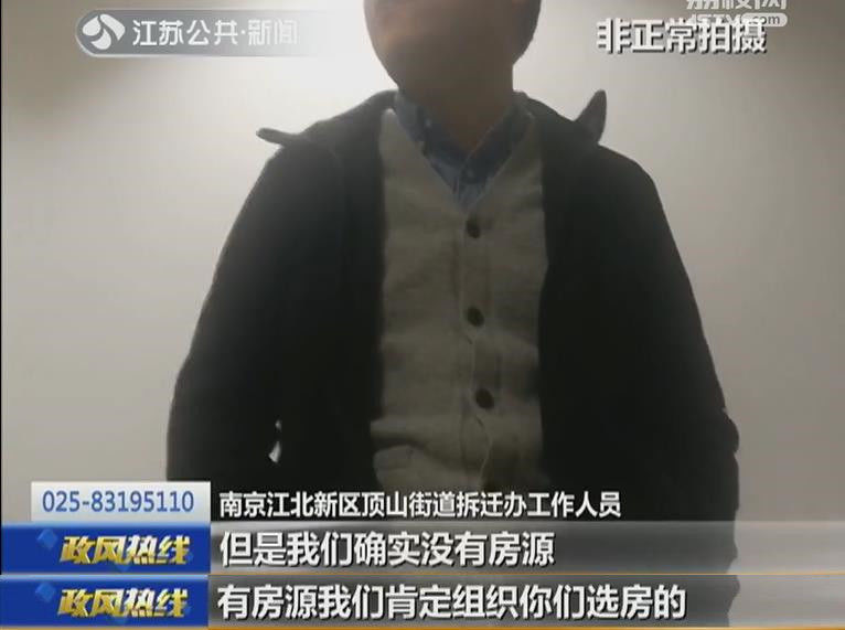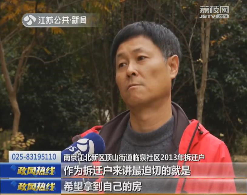 南京江北新区顶山街道拆迁办工作人员:“我们也急啊,还知道啊,不光是你们过来找,很多拆迁户都过来问,但是我们没有房源,有房源我们肯定组织你们选房的,我们只管拆迁,我们只管拆房子不是我们盖。”