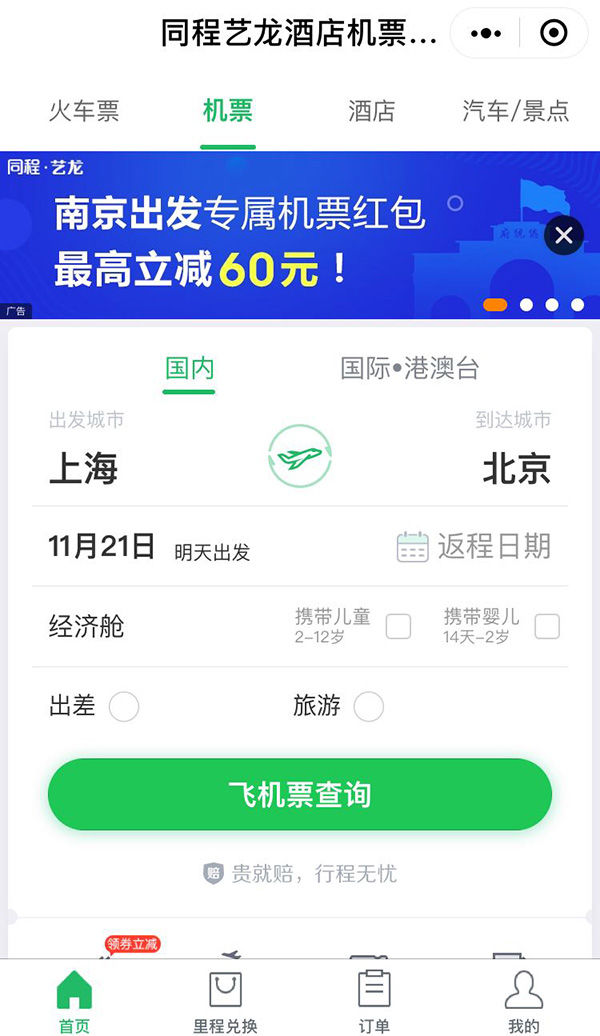 同程艺龙搭售界面