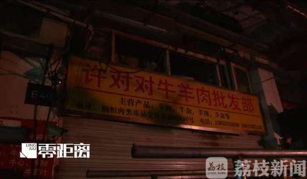今天(11月21日)上午,记者在南京润恒肉类冻品交易市场内看到,“许对对”牛羊肉批发部已被市场方勒令关门。