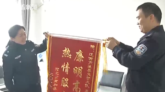 萍乡市芦溪县公安局交警大队事故中队民警易理星:“我每年都要处理许许多多的交通事故,包括外地司机,特别是外地货车司机,这一河北的司机送面锦旗过来,真的是很感谢他。”