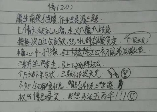 (原标题:作业没完成,杭州初二男生自创悔过诗)