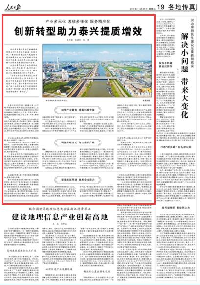 今天,《人民日报》刊登:“产业多元化 考核多样化 服务精准化——创新转型助力泰兴提质增效”一文。