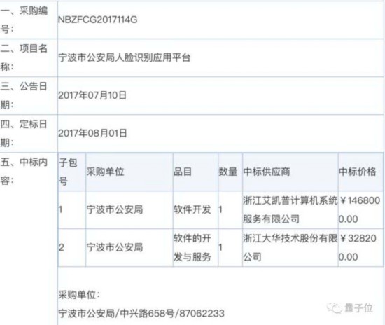 至于目前在用的究竟是哪家公司的技术……很遗憾,量子位尝试联系招标的宁波市公安局和招标公司,未得到更为明确的信息。