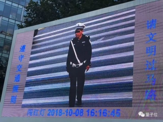 这个系统一旦看到闯红灯的人,就会把这个人闯红灯的照片拍下来,把人脸的部分放大,展示在大屏幕上告诉大家:这个人,刚刚闯了红灯。