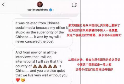 中国有句老话,“爱人者,人恒爱之;敬人者,人恒敬之”。D&G显然没有明白这个道理,一边在中国市场赚取真金白银,一边侮辱中国,这样的行径着实可鄙。不过,这并不是D&G的第一次辱华行为,早在去年,该公司在一则广告中就用极端“对比”呈现发展与贫困的场景,“故意展示中国落后的部分”。这一系列举动引发了国人的强烈不适,不少网友明确表示要抵制其产品。