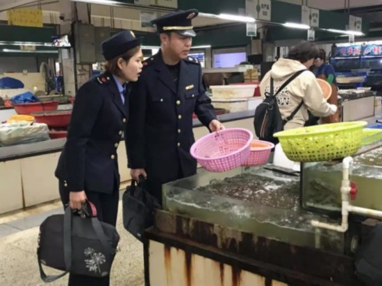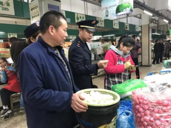走进淮海路农贸市场,道路通畅,环境整洁,清江浦区市场监督管理局工作人员沈道春和他的同事们正在对这里的食品进行检查。 他们通过票据查验、专业设备检测,接受市民投诉等方式及时发现食品安全问题,确保广大市民买得舒心,吃得放心。