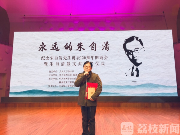 “朱自清散文奖”以朱自清命名,旨在纪念朱自清先生,表彰汉语散文写作的卓越成就,重申散文写作的文化价值和散文对于民族语言与生活的责任。该奖项奖励评奖期内在中国大陆公开出版的散文作品和在散文写作中获得卓越成就的散文家,以及才华出色的散文新人。朱自清散文奖于2010年创立,逢双年颁发,颁奖地永久设在朱自清家乡扬州。今年是朱自清先生诞辰120周年,也是第五届朱自清散文奖的评奖、颁奖年。扬州市委常委、宣传部长姜龙、《人民文学》杂志社主编施战军、省作协党组书记韩松林等参加活动并为获奖作家颁奖。