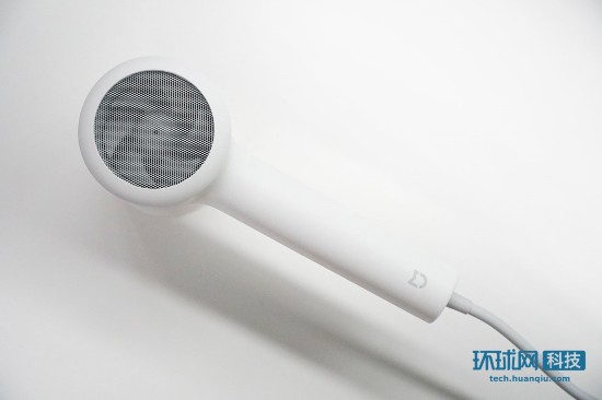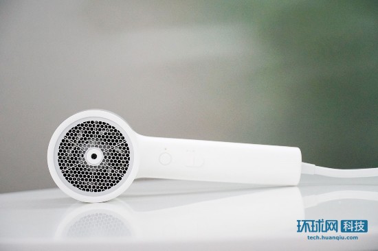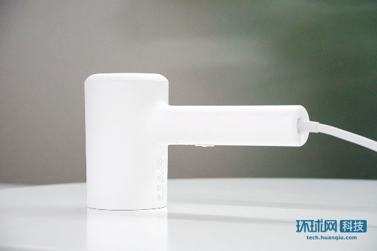 与传统吹风机不规则设计不同,两个圆柱的拼接构成了米家水离子吹风机,吹发过程中用户可以临时将其直接扣在桌面。