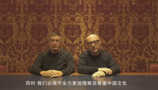 道歉视频中,两位创始人表示:“在过去的几天,我们一直在反省。我们受到的教育叫我们要尊重不同的世界文化。在此,我们希望你们能够原谅我们对文化理解的偏差。一直以来,我们对中国的热爱一如既往。无数次的造访,让我们更加深爱中国的文化。当然,我们还有许多需要学习的地方。对于之前我们的表达所犯下的错误,我们必须表达歉意,我们绝对不会忘记这次的经历及教训,这样的事情也绝对不会再发生。同时我们必竭尽全力更加理解及尊重中国文化。最后,我们发自内心请求得到你们的原谅。对不起。我们绝对不会忘记这次的经历及教训,这样的事情也绝对不会再发生。同时我们必竭尽全力更加理解及尊重中国文化。最后,我们发自内心请求得到你们的原谅。对不起。”