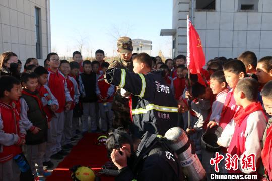 中新网银川11月23日电(于翔 胡耀荣)为全面提高学校师生的消防安全意识,确保社会面火灾形势的稳定,11月22日,宁夏银川滨河新区景城一小近百名师生来到银川市滨河新区消防大队学习消防知识,零距离体验“红门”生活。