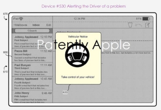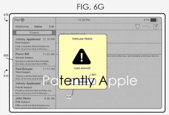 苹果自动驾驶汽车车载警报专利示意图