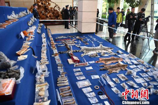 图为警方缴获的濒危野生动物制品。刘冉阳摄