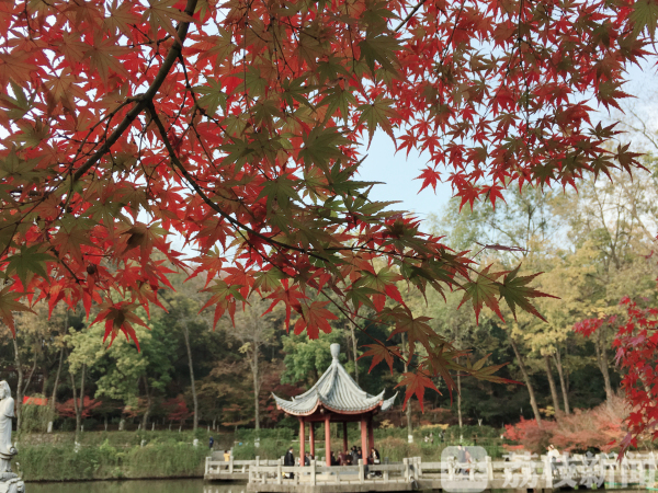 栖霞山今春重点对明镜湖至陆羽茶庄、南门至饮马池的道路两侧进行了色叶树种的补种栽植,共计新增色叶树种五千余棵,红叶整体景观和色彩更佳。