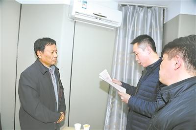 北京市海淀区监委办案人员向被调查人王喜禄宣读《留置决定书》。盛慧 摄
