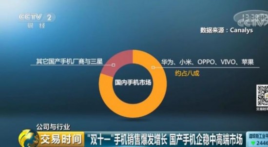 “双十一”榜单与全球手机出货量也非常吻合,如今,越来越多的消费者首选国产手机。3000元到6000元的高端手机市场空间,基本已经被几大国产手机品牌占领,国产手机已经占稳了中高端市场。