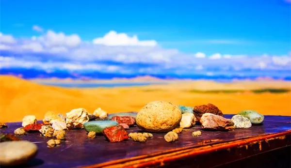 形成原因:平均海拔五千米以上的高原盆地气温低,沙子易凝结冰霜,在阳光的照射下产生光的折射,呈现出五彩缤纷的光芒。