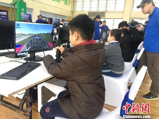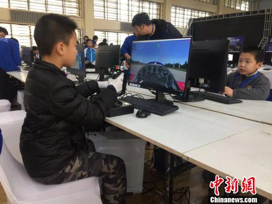 小选手在电脑上进行模拟飞行比赛 王妮娜 摄